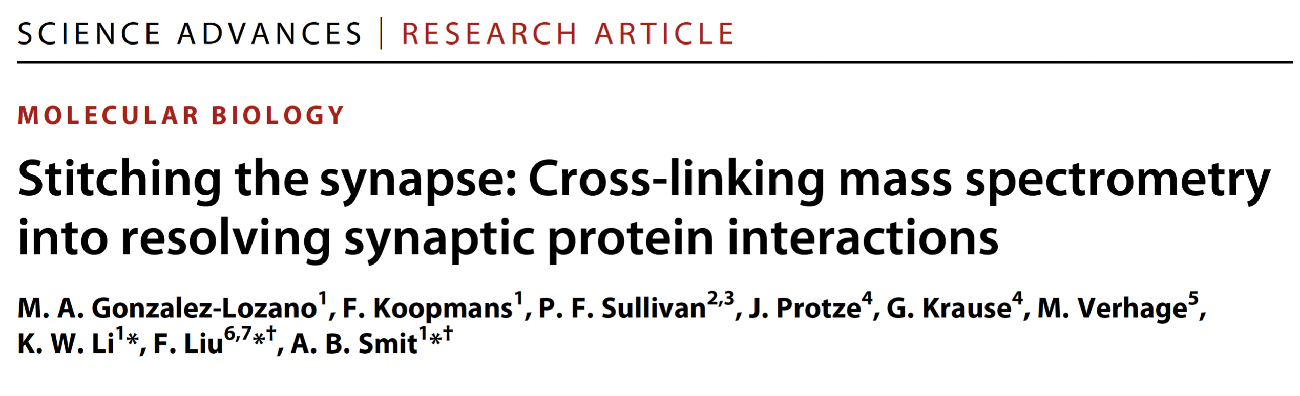 A new study by Miguel Gonzalez-Lozano (MCN) and colleagues demonstrates how cross-linking mass spectrometry can contribute to the discovery of novel synaptic protein interactions. The study was published in Science Advances on February 19, 2020.