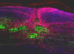 A central topic in neurobiology concerns the study of the formation of neuronal connections and their potential or failure to regenerate after injury. In the peripheral nervous system (PNS) injured neurons usually do regenerate quite successfully. In contrast, in the central nervous system (CNS) axonal regeneration is hampered by a lack of neurotrophic support, the formation of scar tissue, the expression of neurite outgrowth- inhibitory proteins at and around the site of the lesion, and a deficiency in the intrinsic ability of CNS neurons to initiate a program of gene expression that supports regeneration.